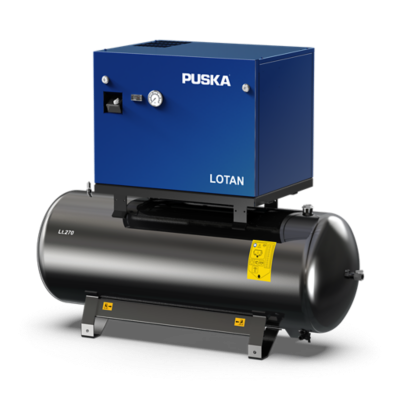 Para garantizar un suministro de aire estable, los compresores LOTAN ofrecen diversas opciones para almacenar el aire. Si el espacio es limitado, la unidad en formato bancada integra un recipiente de aire de 27 litros. Si necesita más almacenamiento, los modelos montados sobre depósito están disponibles con tamaños de 270 o 500 litros.