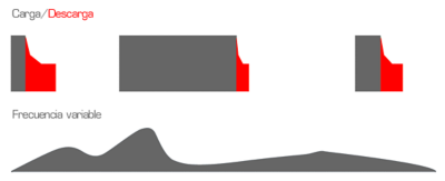 En modo de carga, el compresor funciona al 100% y la presión aumenta hasta que alcanza su valor máximo. A continuación, el compresor pasa al modo de descarga antes de pararse tras un tiempo establecido, o hasta que la unidad alcanza el valor de presión mínima y se repite la misma rutina.