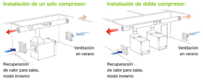 Nos sistemas conjuntos de recuperação de calor de dois compressores, é criada uma válvula em cada unidade que interbloqueia com o motor do compressor. Desta forma, evita-se que o ar quente regresse a um compressor parado.