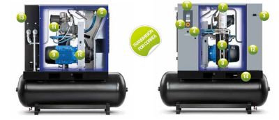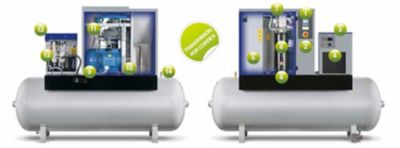 Pode ser facilmente equipados com reservatório de ar, secador de frigorífico, filtro de ar e pós-filtro, oferecendo-lhe uma solução compacta e completa para a sua empresa.